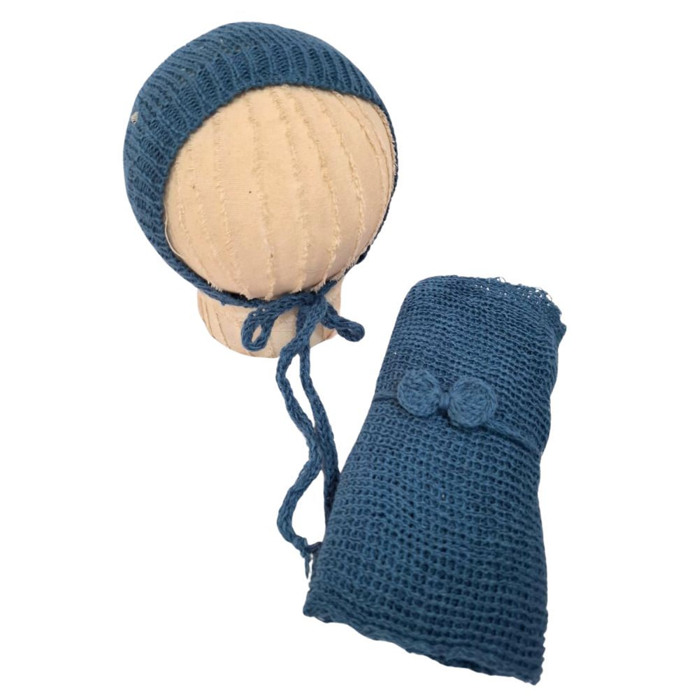 Kit com Wrap, Touca e Headband, todos feitos em lã de tricô macia e confortável para o bebê. Com excelente elasticidade e fácil de enrolar, além de proporcionar ainda mais suavidade e delicadeza ao ensaio.