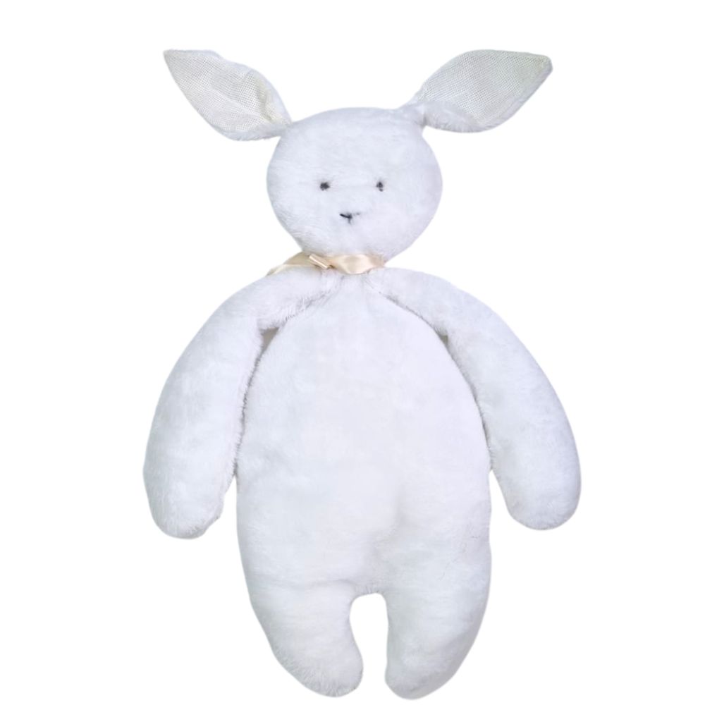 Feito em pelúcia branca lisa super macia e cheio de fibra siliconada, com acabamentos lindos e delicados. Medindo 67cm de altura total sem contar as orelhas, se contarmos as orelhas a altura dele será de 84cm. Bora deixar a imaginação voar com diversas poses lindas, as mamães vão amar!