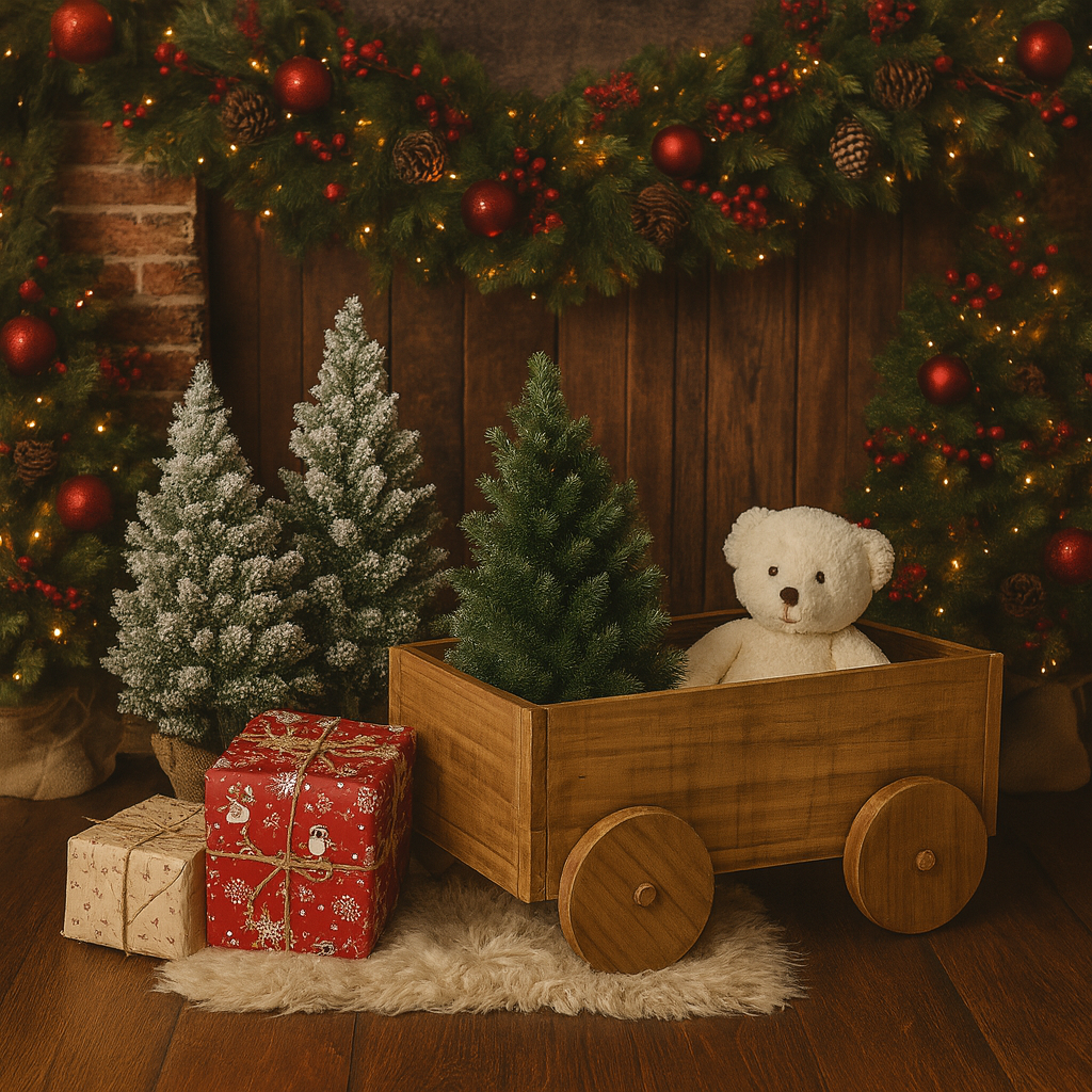 Um carrinho em madeira, resistente para bebês de até 1 ano e com uma linda pintura vintage. Ele já vai com puxador removível (cenográfico), além de uma linda lousa pra você escrever o nome do bebê com giz comum.