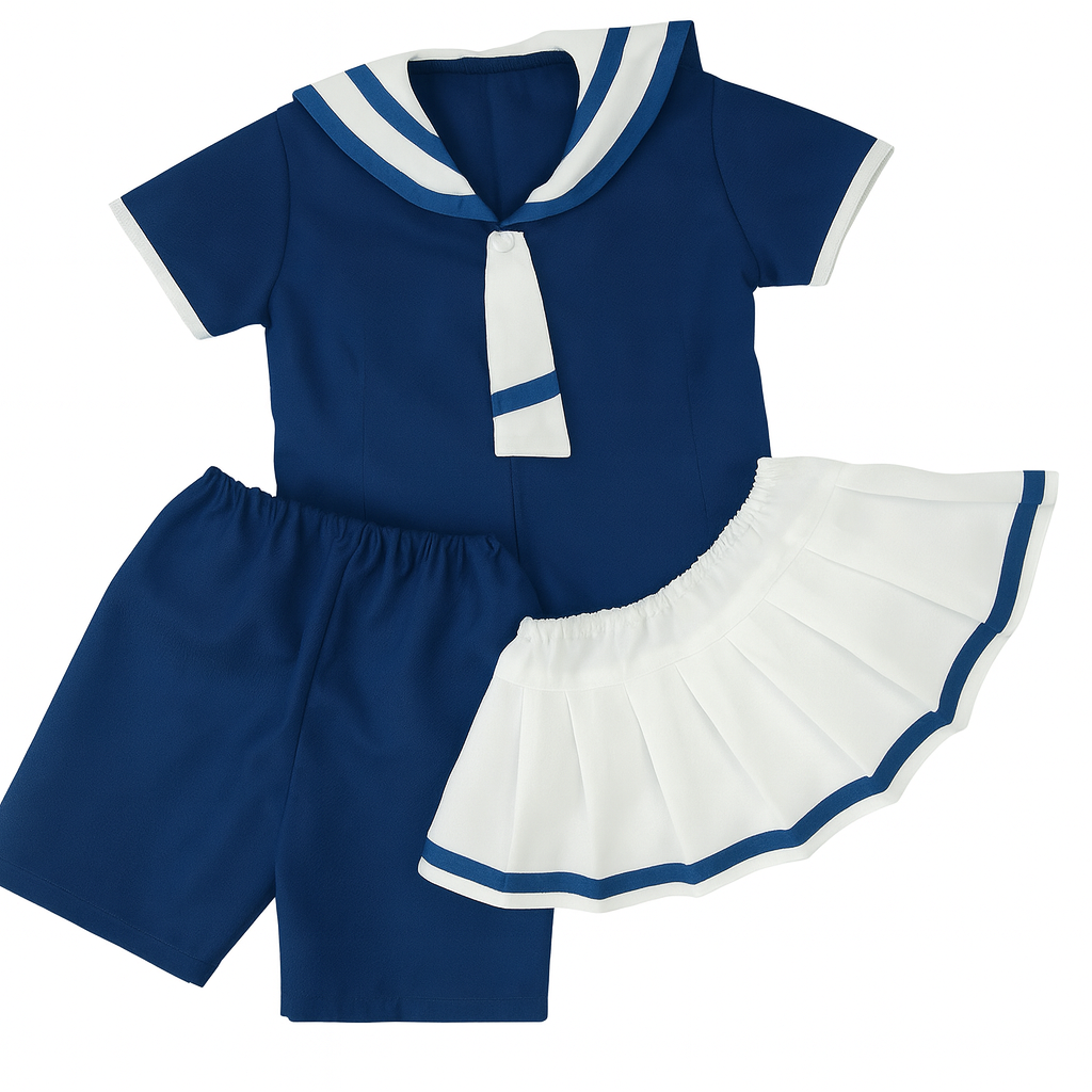 Combo unissex composto por: Short, saia, camisa e chapéu. Tamanho G de 7 a 12 meses.