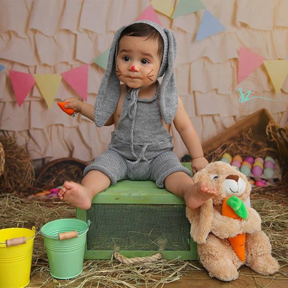 Ligeiras variações ou imperfeições podem ocorrer por se tratar de um produto inteiramente artesanal e fazem parte da confecção da peça. Mantenha sempre uma assistente ou a mamãe ao lado do bebê durante o ensaio.