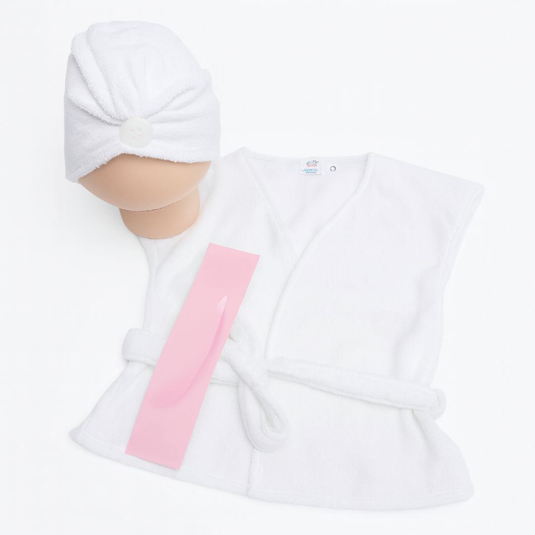 PARA FAZER ENSAIOS DE PÓS BANHO, CONJUNTO COMPOSTO POR TOUCA E ROUPÃO COM AJUSTE NA FRENTE. DISPONÍVEL NA COR BRANCO (UNISSEX.)