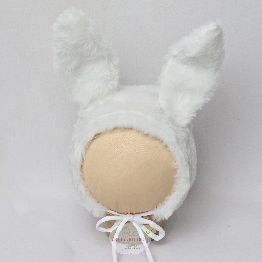 Touca de Páscoa feita em pelúcia macia e delicada, fácil de colocar através da fitinha em tecido que se amarra no pescoço do bebê. Sua estrutura é armada, permitindo que ela fique em pé sozinha, além de ser possível modelar o formato, acrescentando uma dobrinha na ponta por exemplo.